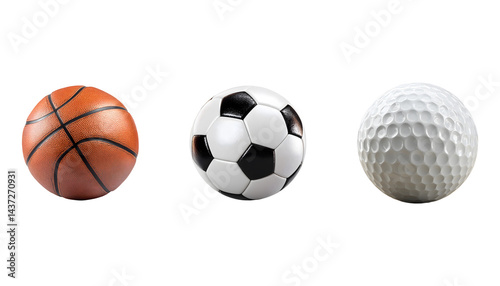 Basketball Soccer, Golf Balls, Sports Equipment isolated on a PNG background