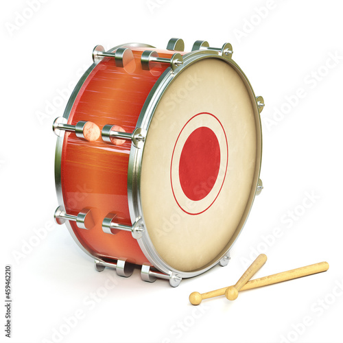 Bass drum instrument isolated on white background 3d rendering
