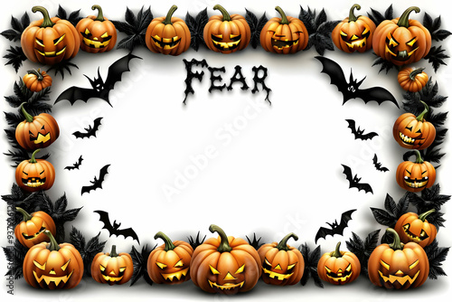 Bat and Pumpkin Border with Fear Text concept as A dark and eerie border frame featuring bats and pumpkins at the edges with the word Fear in a bold scary font. The design includes generous copy space