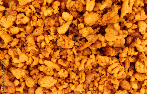 Batter scraps background texture, also known as batter bits or dubs, they are pieces of deep-fried batter left over in the fryer as a by-product of frying fish, and are served as an accompaniment to c