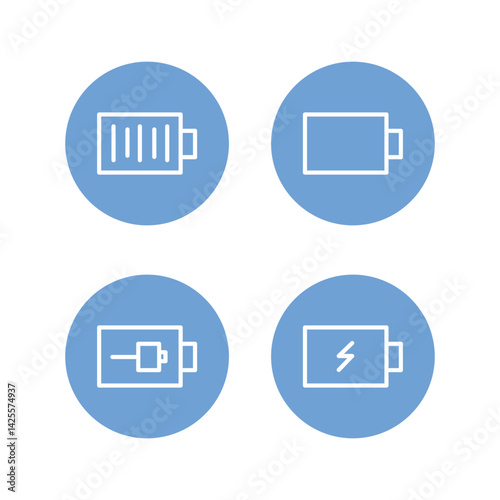 Battery icon set. Battery Full charge indicator or low charge sign. Battery charging, vector illustration