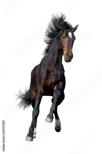 Bay horse run gallop isolated on white