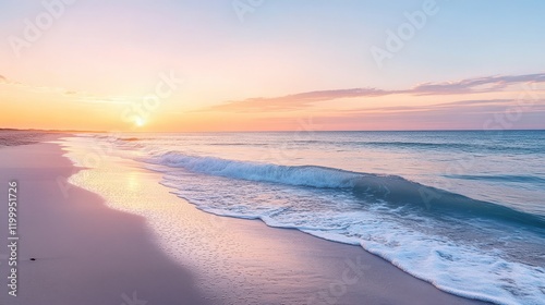 beach, sunrise, wave, pastel, sea, ocean, soft, sharpened, colours, tranquil, serene, landscape, nature, outdoors, peaceful, calm, beauty, morning, scenic, light, horizon, relaxing