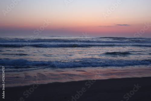 beach, sunrise, sunset, pink, sand, wave, morning