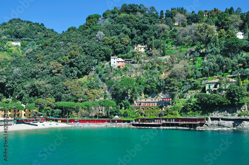 Beach in Portofino called Baia di Paraggia at italian Riviera,Liguria,Italy