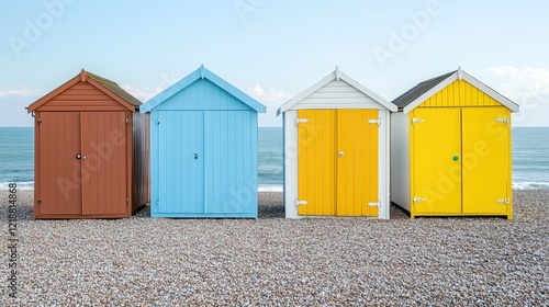 beach, hut, blue, hut, england, summer, house, colourful, vacation, brighton, sea, holiday, sky, sand, coast, door, wooden, yellow, colourful, colours, green, architecture