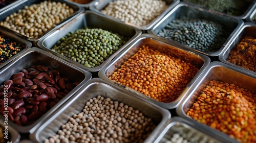 Beans peas and lentils in metallic containers Nutrient rich food