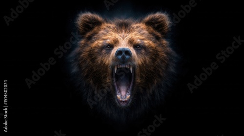 bear, head, portrait, animal, wild, nature, roar, angry, mouth, open, brown, fur, dark, black, background, closeup, powerful, majestic, sharpened, predator, wildlife, eye, sharp, teeth, ferocious, close, graphic, digital, art, image, photo, realistic, portraiture, animal kingdom, fang, jaw, threatening, photographic, aggressive, strength, dramatic