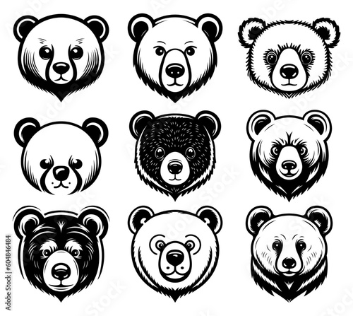 symbol, animal, logotype, head, vector, bear, design, illustration, face, graphic, nature, wild, signs, icon, art, wildlife, silhouette, isolated, emblem, mascot, style, mammal, element, black, cartoon, grizzly, white, power, predator, beast, zoo, line, strength, drawing, shape, strong, cute, big, background, simple, template, vintage, tattoo, set, creative, abstract, angry, retro, label