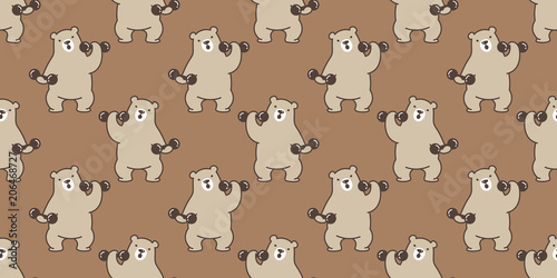 bear seamless pattern polar bear vector panda teddy weight training gym sport isolated background wallpaper brown