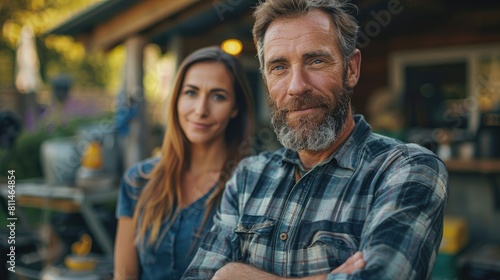 couple, love, human relationships, marriage, family, home, house, mortgage, real, estate, pose, porch, front, 2, pair, hand, yard, door, white, hold, shirt, savings, wife, future, lawn