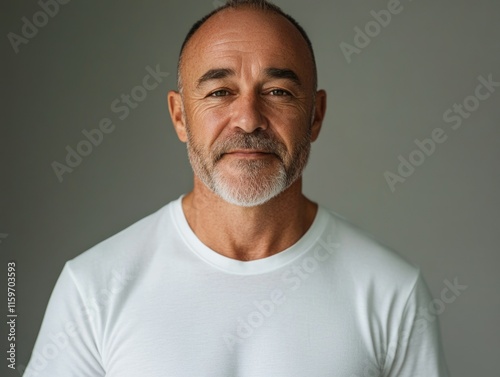 beard, moustache, old, man, white, hair, direct, look, plain, shirt, balding, serious, expression, clean, shave, light, background, professional, closeup, shot, middle, aged