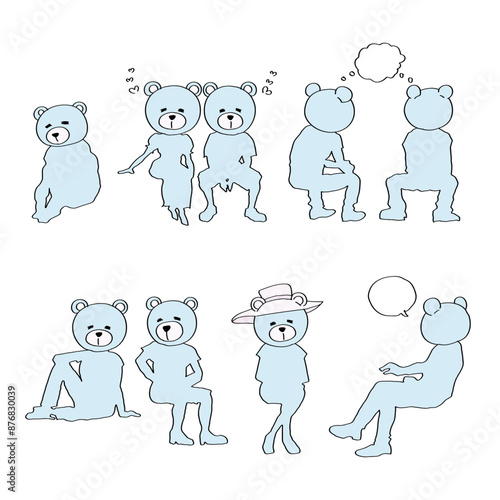 silhouette, people, person, illustration, standing, cartoon, vector, plan, bear, man, unique, ai, cute, character, drawing, comic, funny, group, set