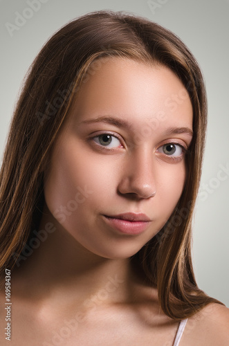 Beautiful female looking at camera. Attractive young girl portrait. Healthy woman studio portrait.