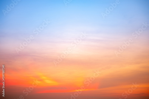 Beautiful , luxury soft gradient orange gold clouds and sunlight on the blue sky perfect for the background, take in evening,Twilight, Large size, high definition landscape photo