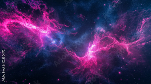 Beautiful abstract background of a space nebula in the colors of sunlight and elements of modern technology