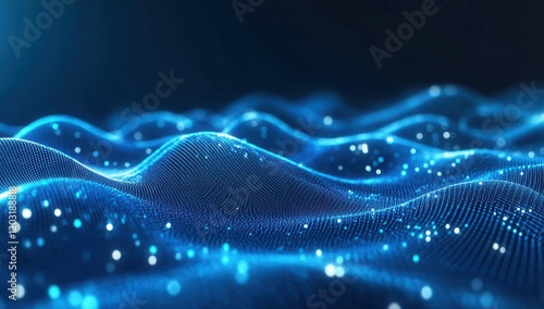 abstract, technology, background, blue, wave, light, particle, depth, movement, digital, design, futuristic, shimmer, texture, surface, bright, pattern, nature, three-dimensional, scenic, visual, graphic, energy, ocean, colours, glow, soft, shape, flowing, landscape, illusion, artistic, vibrant, elegance, effect, fluid, dream, sparkle, modern, creative, calmness, innovation, aesthetic, atmosphere, serenity, concept