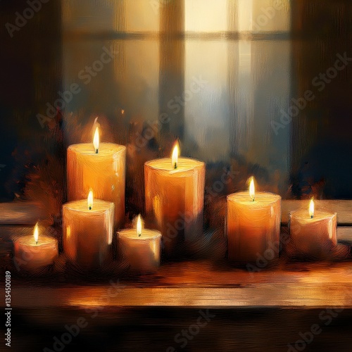 beautiful abstract lit candles with copy space, peaceful concept graphic resource