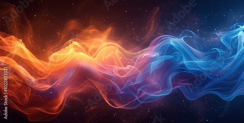 Beautiful abstract orange-blue gradient background with swirling smoke and grainy texture, hyper realistic 4K