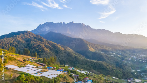 Beautiful aerial view of rocky mountain range Mount Kinabalu.