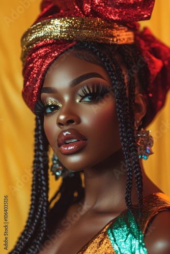 Beautiful African Woman with Luxurious Box Braids and Glamorous Makeup, Perfect for Beauty and Fashion Campaigns Generative AI