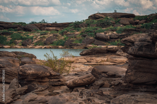 Beautiful amazing of rocks, Natural of rock canyon in mekhong river , Hat Chom Dao, Ubon Ratchathani province, North east Thailand