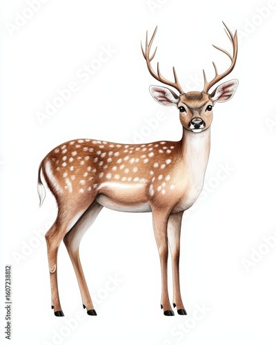 Beautiful and Graceful Illustration of a Spotted Deer with Majestic Antlers in Nature