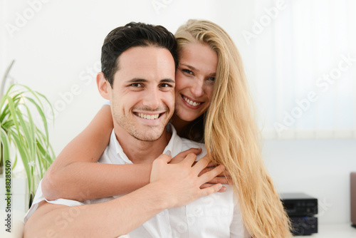 beautiful and happy young couple in love relaxed at home