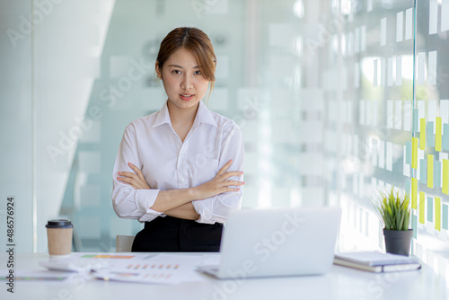 Beautiful Asian woman is a businesswoman who leads a new generation of startups, a woman who runs and manages a business plan to build confidence and stability in business, woman-led business concept.