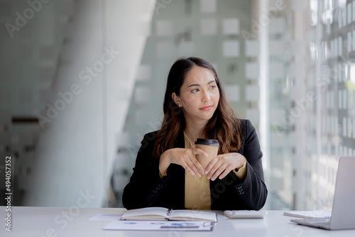 Beautiful Asian woman is a businesswoman who leads a new generation of startups, a woman who runs and manages a business plan to build confidence and stability in business, woman-led business concept.