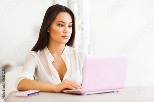 adult, attractive, beautiful, asian, break, business, businesswoman, cafes, caucasian, communication, computer, female, girl, happy, cyberspace, lady, laptop, modern, net, notebook, 1, online, pink, person, reading, eatery, to sit, student, surf, table, technology, using, web, wi-fi, woman, work, young, job, brunette