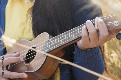 Beautiful asian women with ukulele