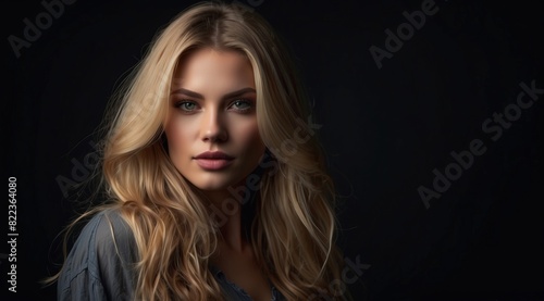 Beautiful attractive blonde woman model with long hair on a dark background