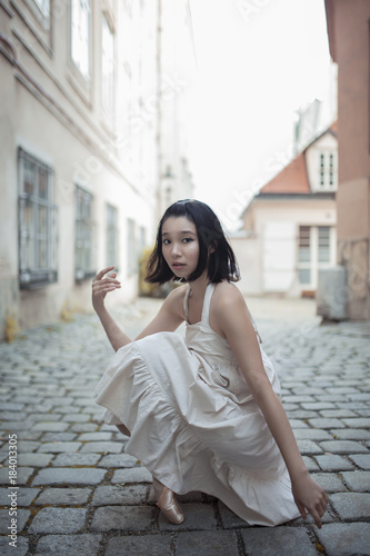 asian, autumn, ballerina, ballet, ballet dancer, beautiful, beauty, colours, dance, dancer, dancing, dress, fall, female, japan, japanese, light, outdoors, outside, shadow, shoe, street, sun, sunshine, vienna, wall, white, woman, ballet shoes, girl, person, people, adult, adult, 20s, young adult, young adult, young person, grown-up