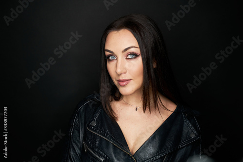 Beautiful Black hair woman beautiful portrait. Hairstyle curly hair beauty female model girl over dark background