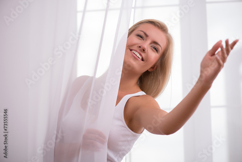 youth, tenderness, lightness, blond, green, eye, straight, slender, slim, slimmer, well, composed, style, cheerful, beautiful, pretty, happy, pale, emotion, feeling, people, female, fashion, young, girl, cleanness, make-up, beauty, joyful, hair, sexy, white, photo, model, adult, woman, fitness, lifestyle, pose, studio, background, isolated, camera, professional, healthy, happiness, smile