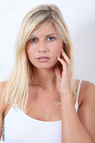 Beautiful blond woman on white background