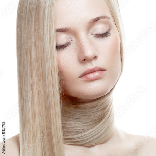 Beautiful Blonde Girl. Healthy Long Hair