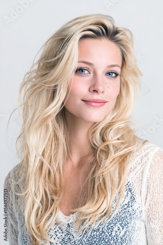 Beautiful blonde woman portrait. Perfect for beauty, fashion, and haircare advertising. Ideal for websites and magazines.