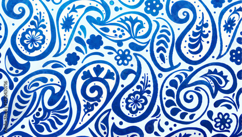 Beautiful Blue and White Paisley Pattern for Design Inspiration. This vibrant, intricate paisley pattern showcases a delightful mix of blue and white designs.