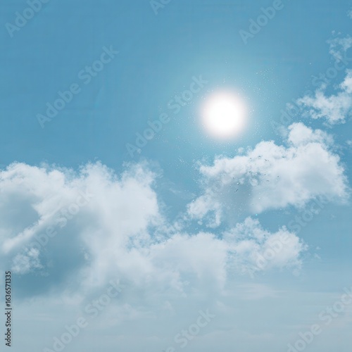 sky, cloud, sun, daylight, blue, white, bright, fluffy, weather, nature, clear, background, daytime, image, digital, photo, graphic, illustration, design, cloudscape, atmosphere, copy, space, poster, wallpaper, vector, isolated, light, cumulus, sunshine, picture