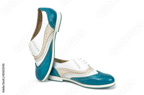 Beautiful blue woman shoes isolated on white background