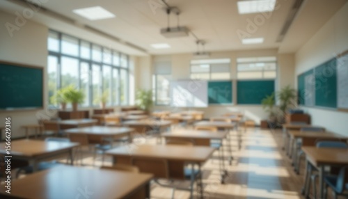 BEAUTIFUL Blurred Background of a Bright Classroom and Study Room with Panoramic Windows and Good Lighting. Beautiful Blurred School Background.