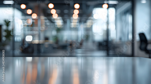 Beautiful blurred background of a light modern office interior with panoramic windows and beautiful lighting.