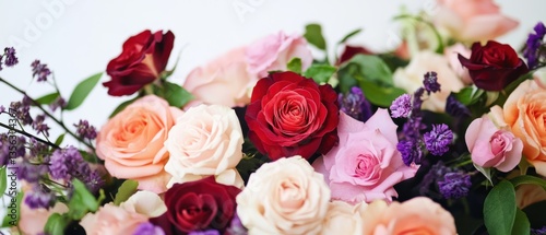 Beautiful bouquet of roses in varied colors, perfect for Valentines Day, anniversaries, celebrations of love, romance, floral arrangements, gift ideas.