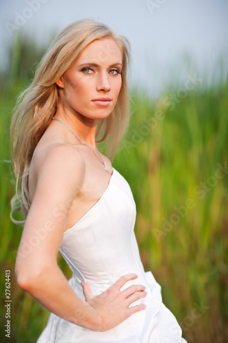 bride, wedding, female, woman, lady, beautiful, beauty, people, one person, outside, blond, blond, white, caucasian, field, married, marriage, 20s, celebration, adult, bridal gown, bridal, portrait, pretty, cute, copy space, vertical, fashion