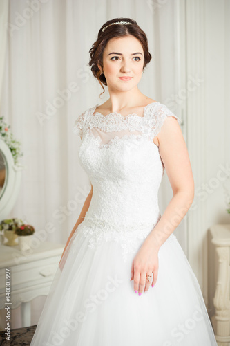 Beautiful bride before wedding ceremony in appartament