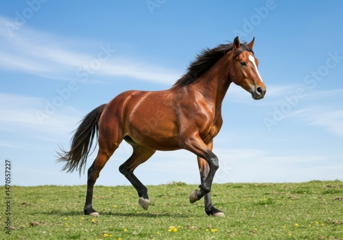 Beautiful brown horse running fast