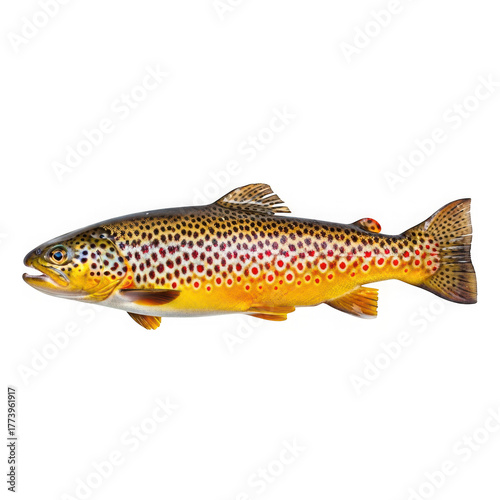 Beautiful brown trout with vibrant spots isolated on transparent background