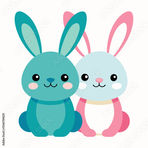 rabbit, rabbit, easter, animal, cartoon, illustration, vector, baby, pink, cute, hare, holiday, card, love, egg, spring, design, toy, couple, pet, ear, funny, art, fun, rabbit